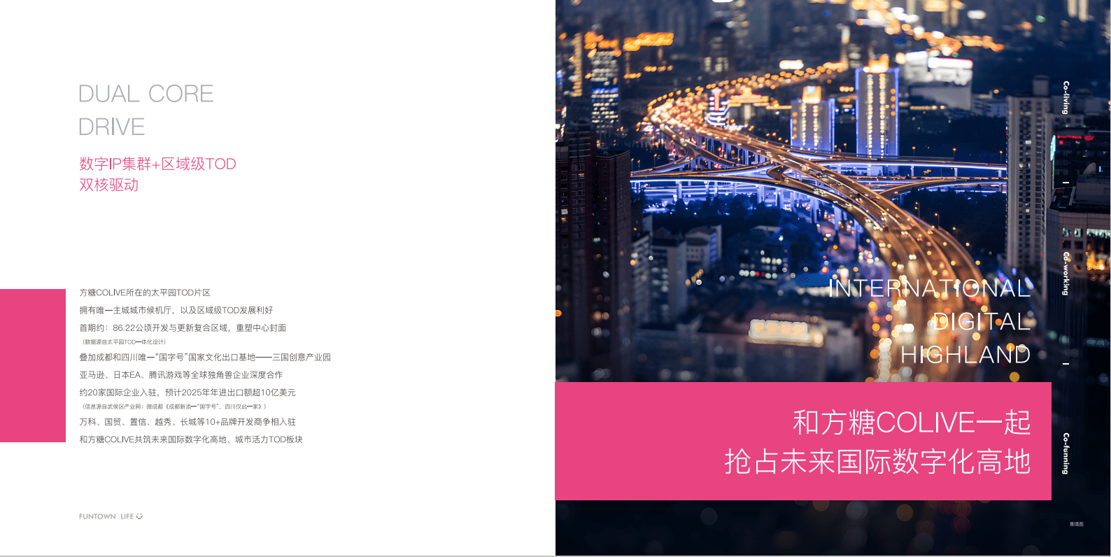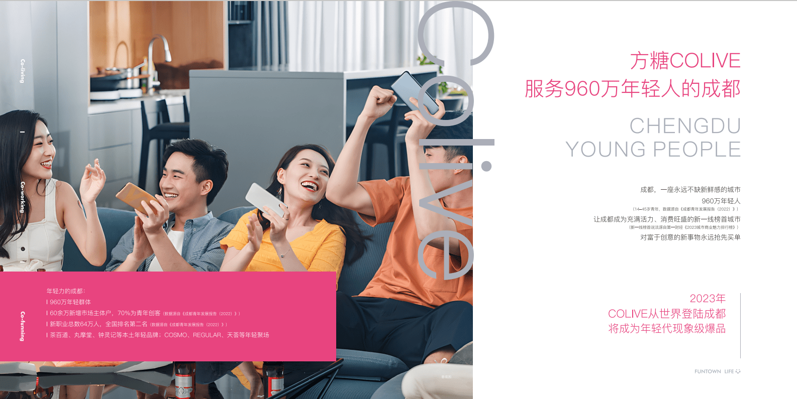 六、南二环·从城TOD,稀缺宽厅LOFT设想,查看更多五、方糖COLIVE同频国际化的成都,为成都960万年轻人供给质量糊口社区COLIVE是全球焦点城市区正风行的【带资产属性的糊口产物】方糖COLIVE以co-working、co-living、co-funning三大系统,开辟商自持项目70%贸易,联袂仲量联行保障现代年轻人的高能糊口、社交需求。