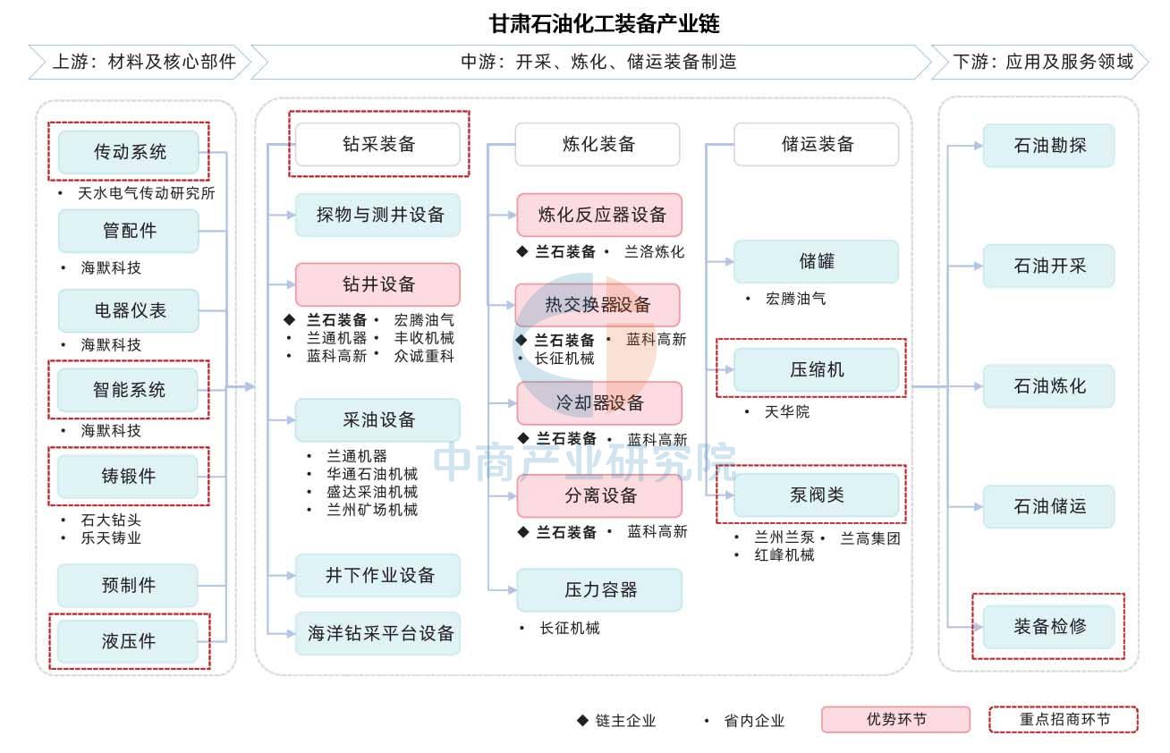 中商谍报网讯:甘肃成立了相对完整的财产系统,下逛使用及办事范畴包罗石油勘察、石油开采、配备检修。财产链涵盖了配备、电工电气配备、矿用及工程配备、高端数控机床、现代农机配备、轨道交通配备等多个范畴。中逛为开采、炼化、储运配备制制,钻采设备、压缩机、泵阀类、配备检修。钻井设备、炼化反映器设备、热互换器设备、冷却器设备、分手设备为劣势环节,